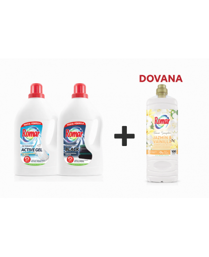 ROMAR SKYSTAS SKALBIKLIS BALTIEMS SKALBINIAMS 2000ML ir ROMAR SKYSTAS SKALBIKLIS JUODIEMS SKALBINIAMS 2000ML + DOVANA ROMAR KONCENTRUOTAS AUDINIŲ MINKŠTIKLIS 2000ML.